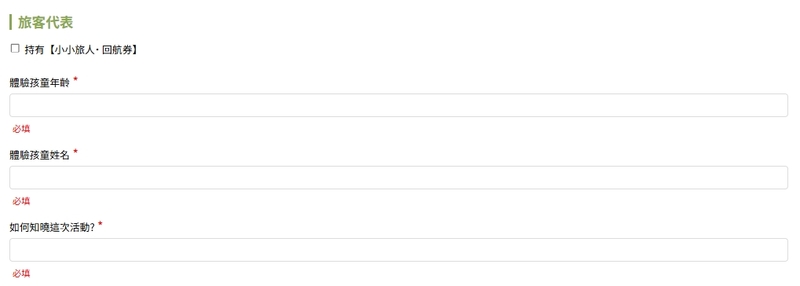 ▲ 持有「小小旅人 回航券」的旅客,請不要忘記於報名時點選【持有小小旅人回航券】之選項,以便我們為您安排入場與【降落禮】喔!