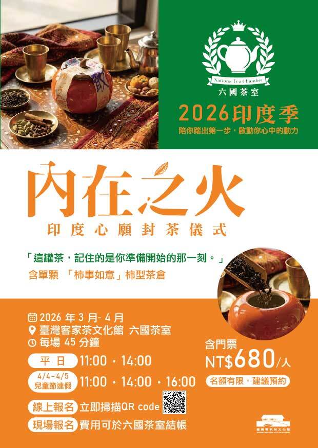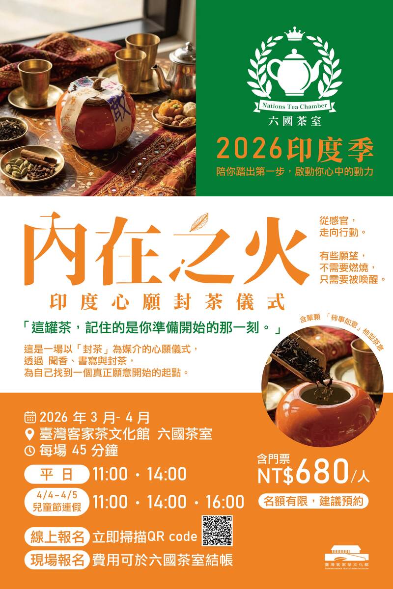 臺灣客家茶文化館推出年度《六國心願封茶》計畫,以六國茶文化為靈感,打造結合儀式感與文化意涵的封茶體驗。2026 年 3 至 4 月印度登場,推出「內在之火・印度心願封茶儀式」,融合印度香料與荷麗節文化,點燃內在之火,將心願封存於茶香之中,激發動力與潛能,成為向前的動力與開始。