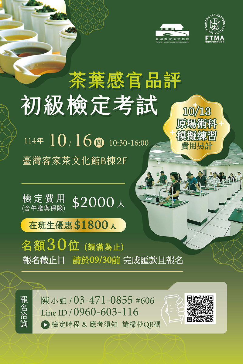 茶葉感官品評初級檢定考試與考前模擬練習報名! 祝福大家考試順利!