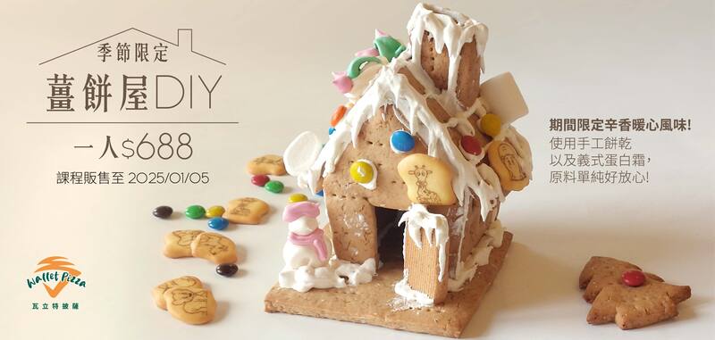 聖誕佳節,來個充滿氣氛的「薑餅屋DIY」。親手搭建專屬於聖誕氣氛的小屋,使用純手工餅乾,搭配聖誕佳節,體驗專屬12月的辛香香甜風味!