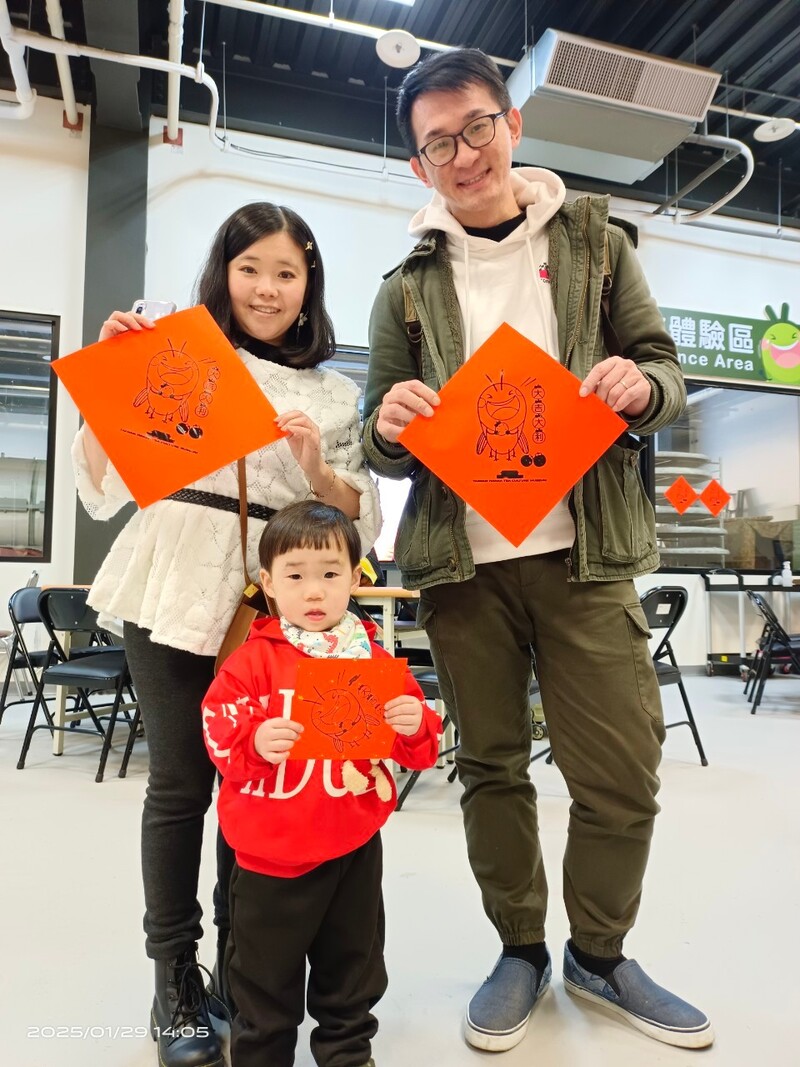 在絹印工作坊中,處處可見家長牽著孩子的小手一起創作,將可愛的小阿膨圖案印在春聯上;燈籠彩繪區裡,小朋友揮灑著繽紛色彩,一盞盞獨特的燈籠為新年增添喜氣。商店街的好運轉盤更是熱鬧非凡,幸運兒抱著獲得的禮品開心合影,驚喜的歡呼聲此起彼落。